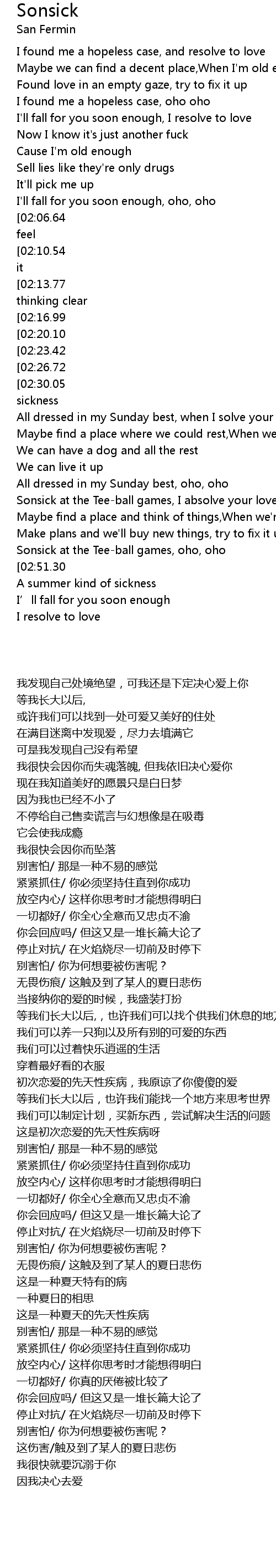 | [02:38.37][02:51.30] | It is a summer kind of sickness |