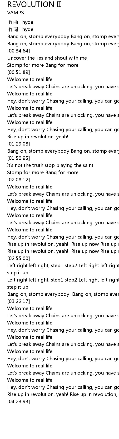| [04:10.05] | Rise up in revolution, yeah! Rise up in revolution, yeah! |