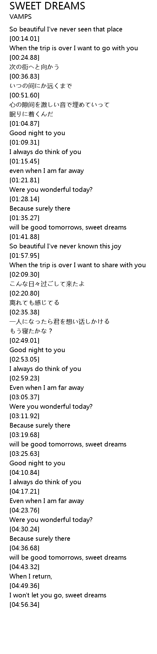 | [01:37.43] | will be good tomorrows, sweet dreams |