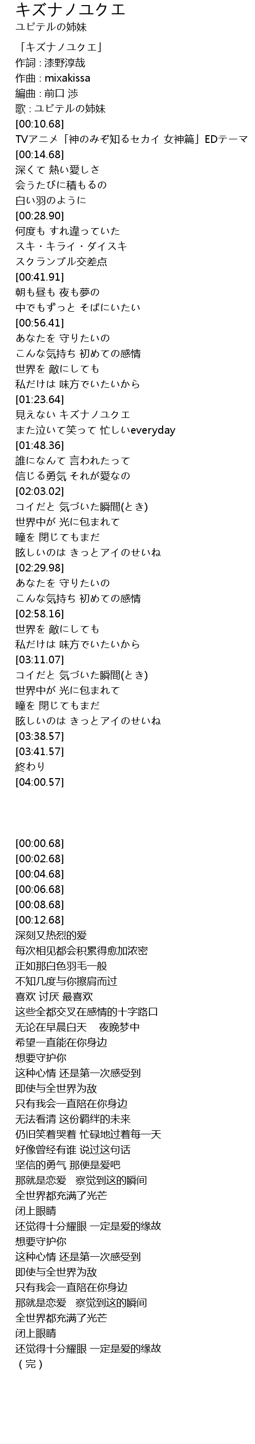 | [00:12.68] | TVアニメ「神のみぞ知るセカイ 女神篇」EDテーマ |