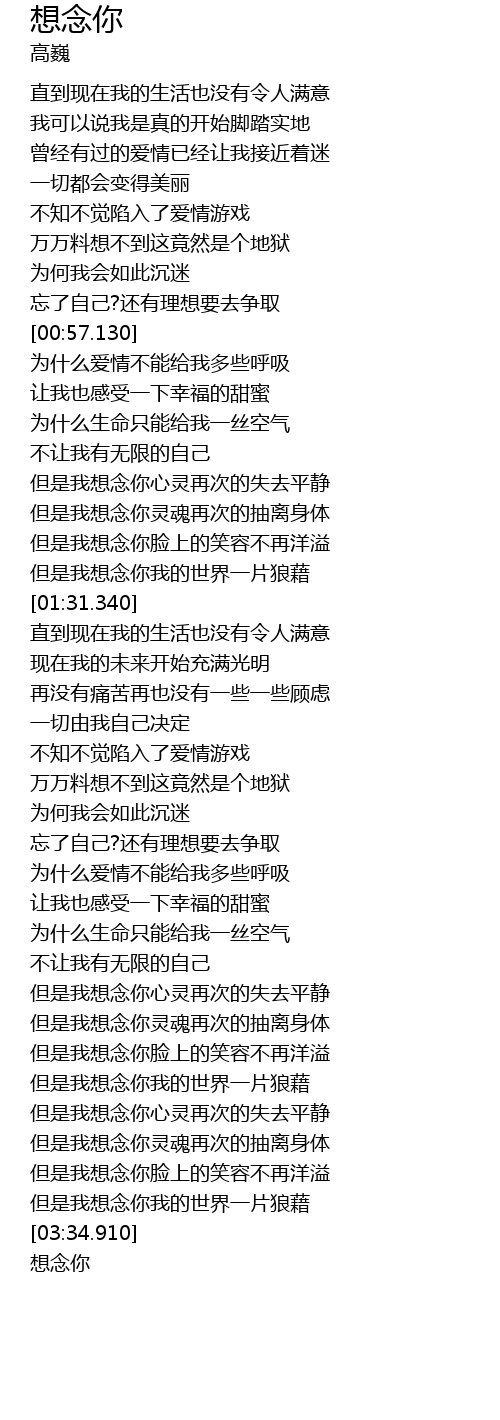 | [03:11.080] | 但是我想念你心灵再次的失去平静 |
