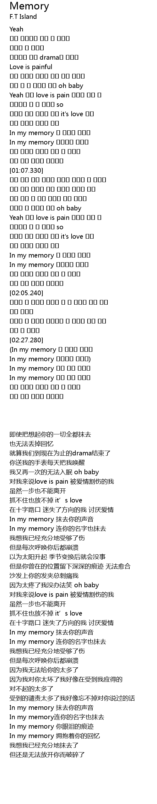 | [01:42.400] | In my memory 니 목소리 지우기 |