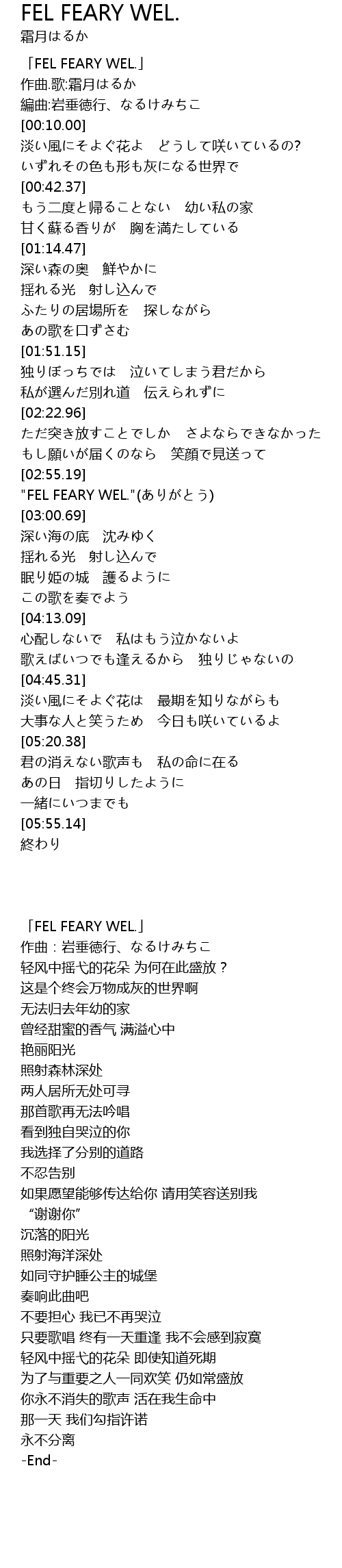 | [00:00.00] | 「FEL FEARY WEL.」 |