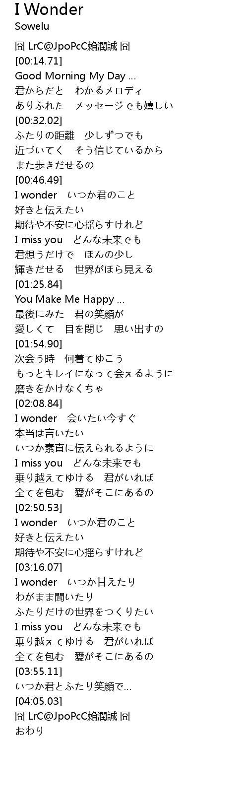 | [03:00.70] | I wonder いつか君のこと |
