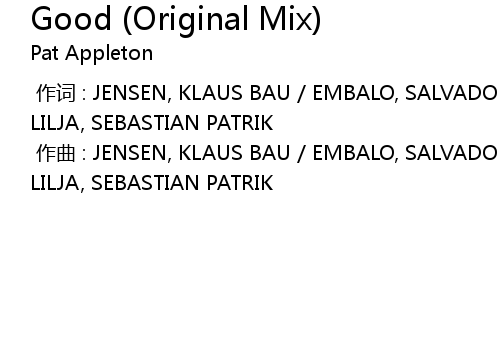 | [00:00.000] | 作词 : JENSEN, KLAUS BAU / EMBALO, SALVADOR (DK) / APPLETON, PAT / LILJA, SEBASTIAN PATRIK |