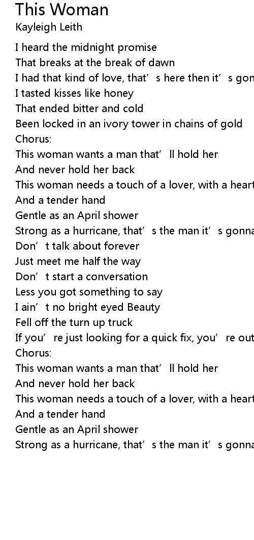 | Strong as a hurricane, that' s the man it' s gonna take to tame, this woman |