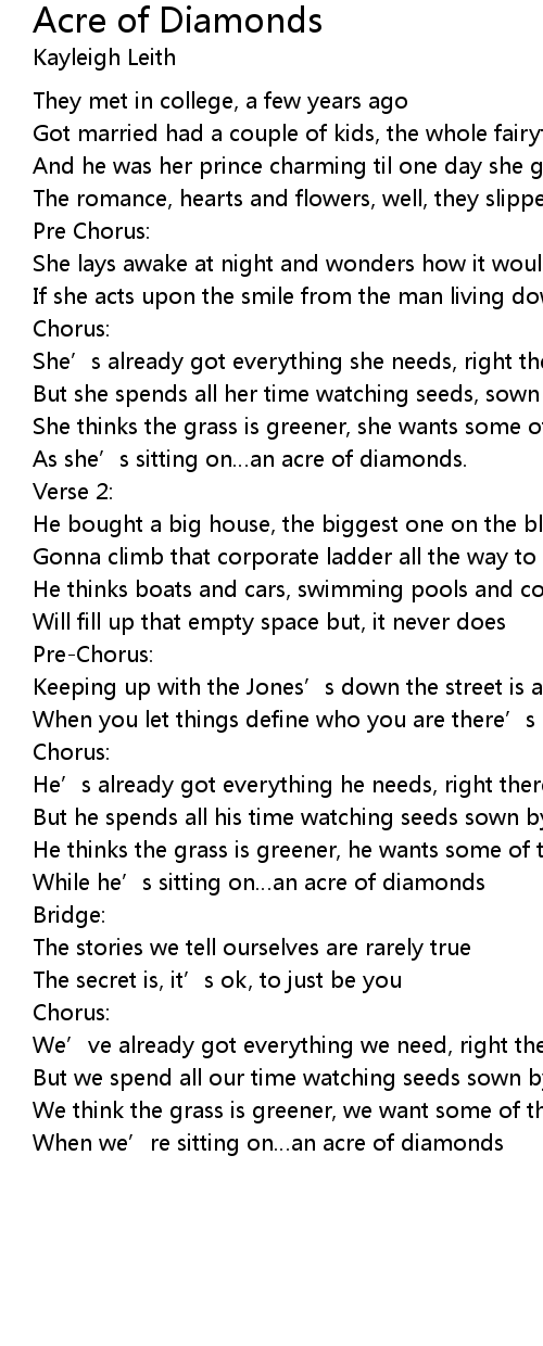 | She thinks the grass is greener, she wants some of their gold she sees shining | |