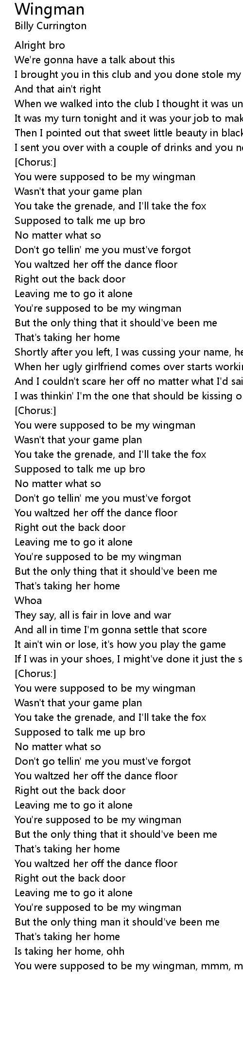 You were supposed to be my wingman, mmm, mmm |