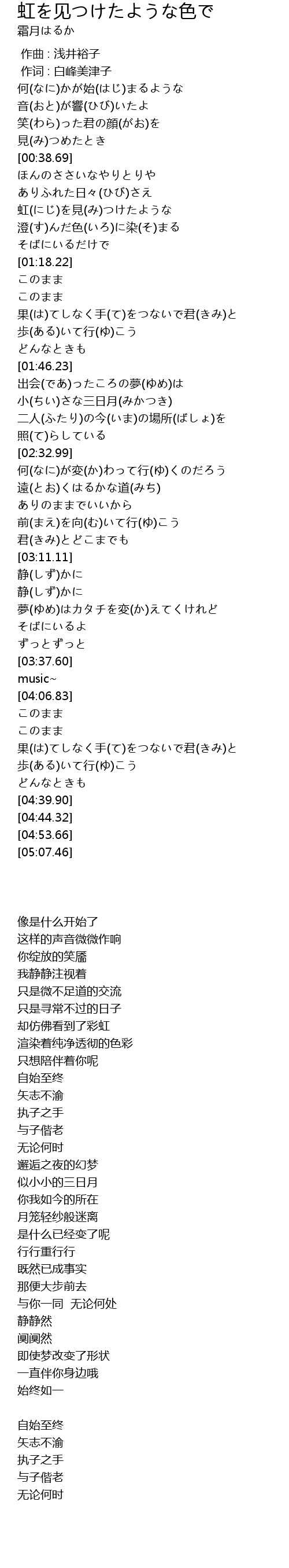 | [00:55.44] | 虹(にじ)を見(み)つけたような |
