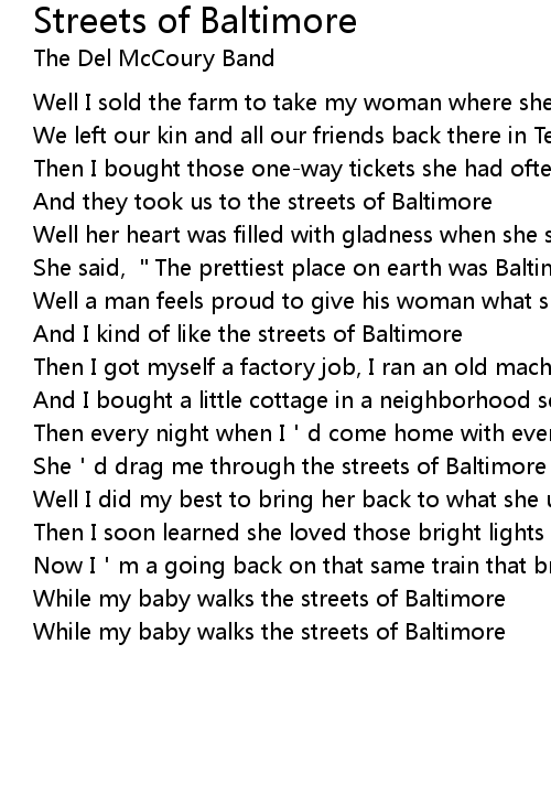 | She said, "The prettiest place on earth was Baltimore at night" | |