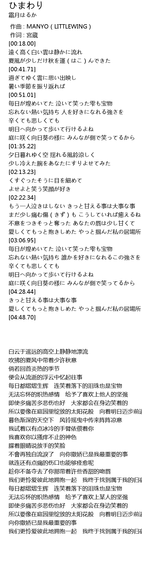 | [04:15.71] | 庭に咲く向日葵の様に みんなが側で笑ってるから |