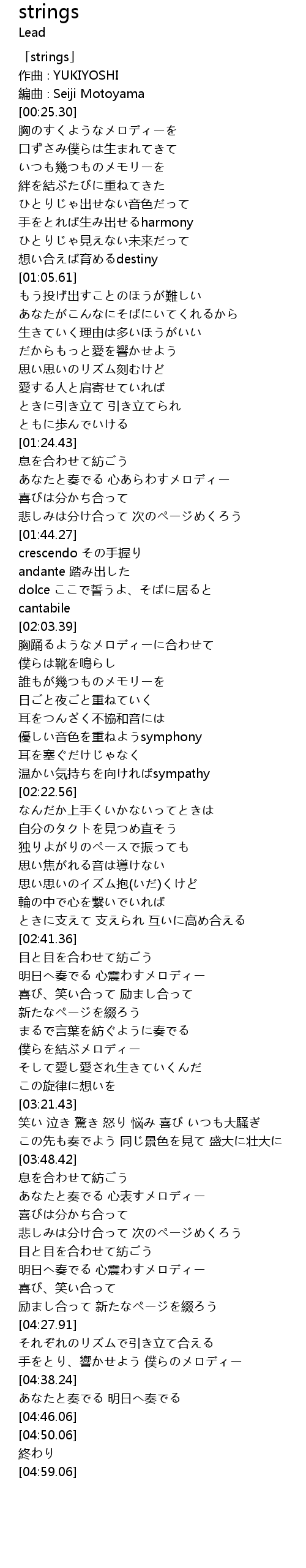 | [04:40.72] | あなたと奏でる 明日へ奏でる |
