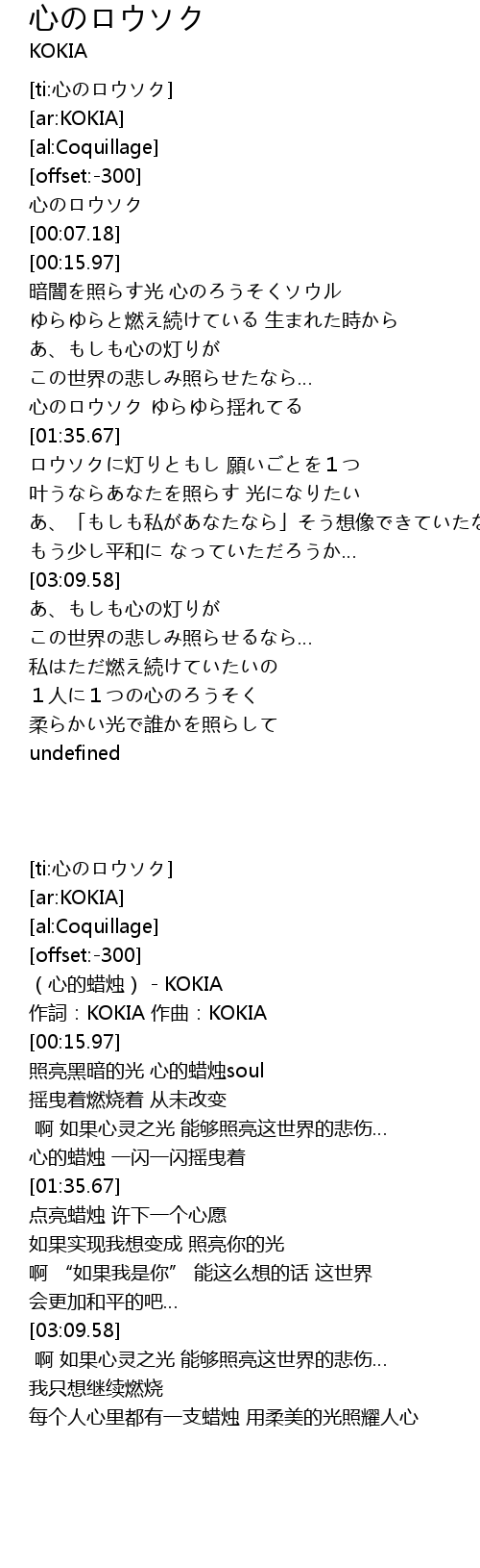 | [00:00.58] | 心のロウソク |