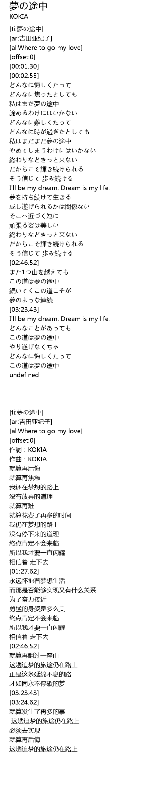 | [00:52.04] | 私はまだまだ夢の途中 |