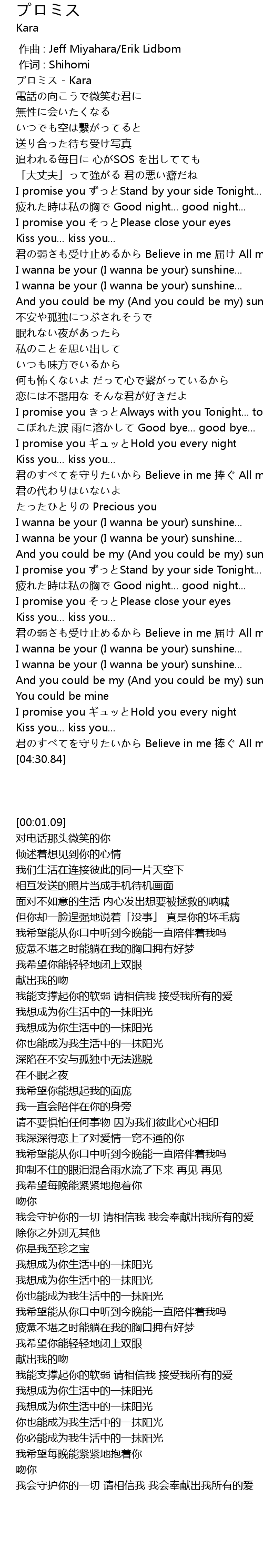 | [00:01.09] | プロミス - Kara |
