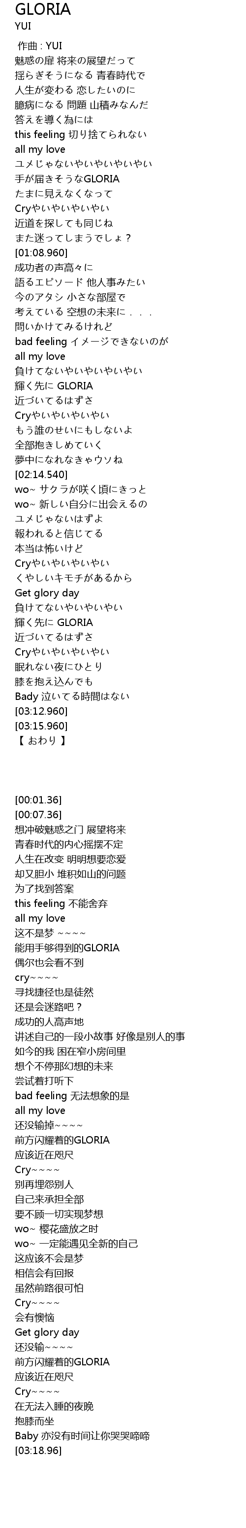 | [00:00.00] | 作曲 : YUI |