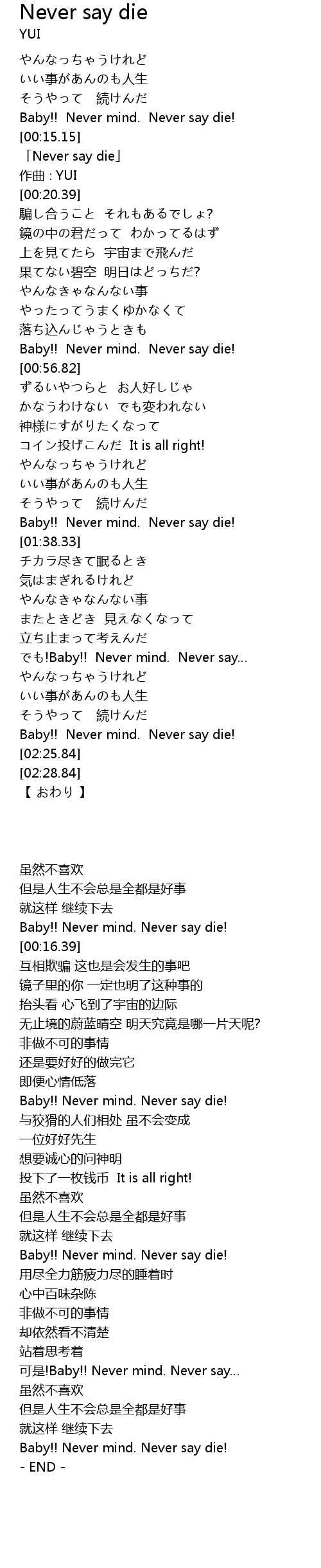 | [00:16.39] | Never say die |