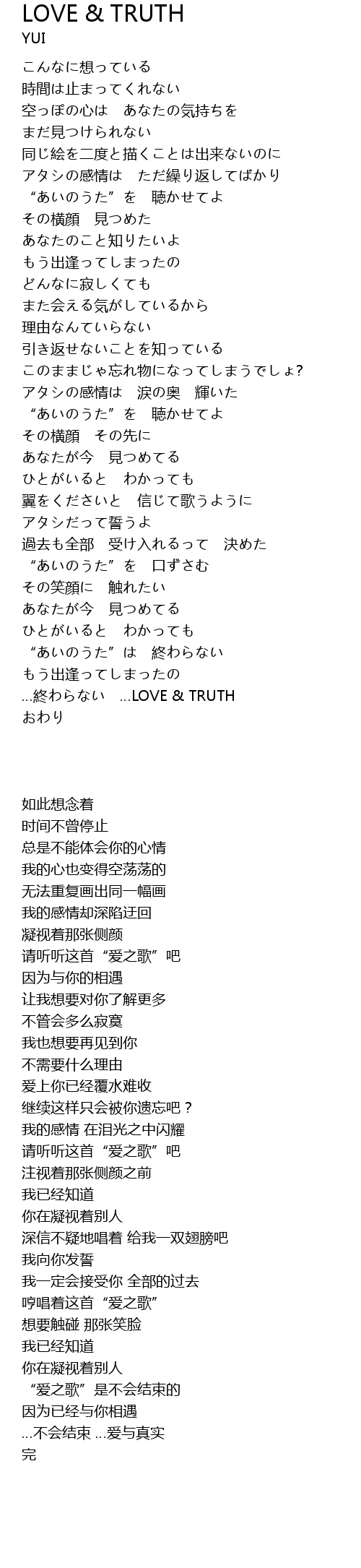 | [03:39.80] | …終わらない …LOVE & TRUTH |