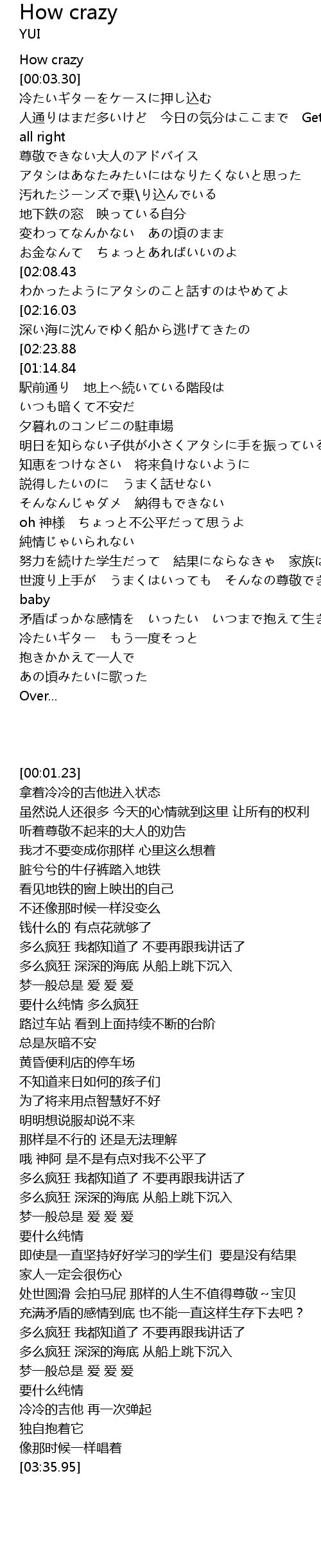 | [03:14.90][01:14.84] | chun qing How Crazy |