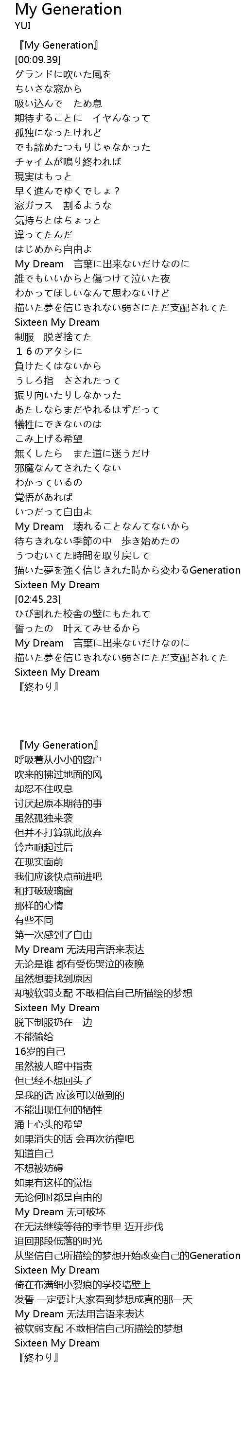 | [02:33.69] | 描いた夢を強く信じきれた時から変わるGeneration |