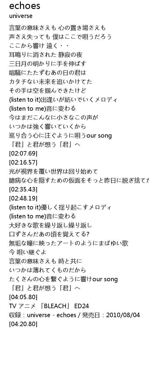 | [04:12.80] | 収録:universe - echoes/発売日:2010/08/04 |