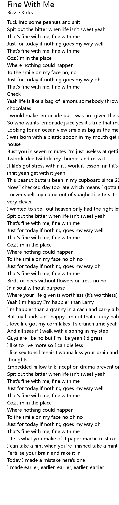 That's fine with me, fine with me |