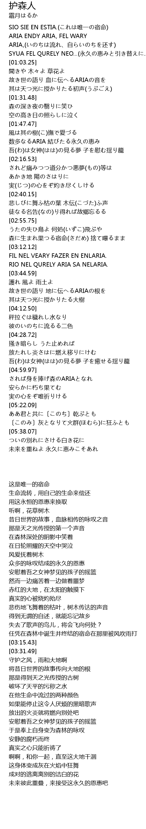 | [05:04.00] | されば身を捧げ森のARIAとなれ |