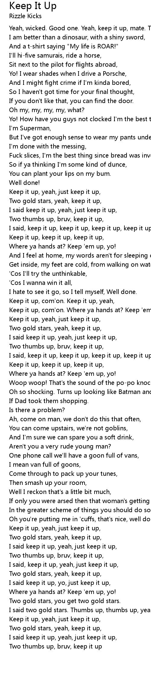 I said, keep it up, keep it up, keep it up, keep it up, |