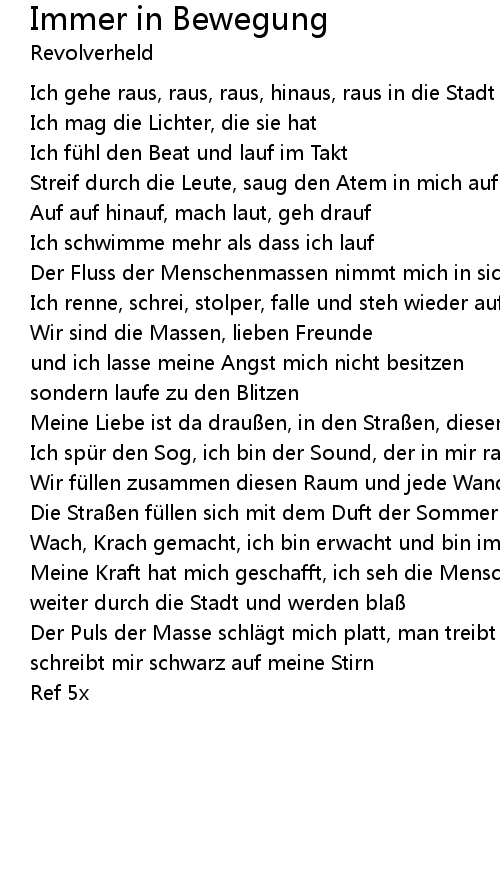 | Ich gehe raus, raus, raus, hinaus, raus in die Stadt | |