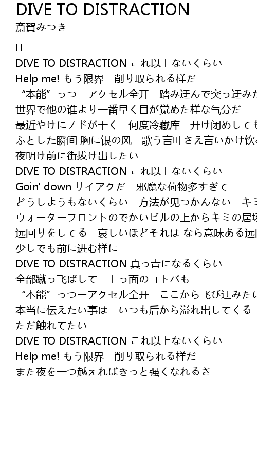 | DIVE TO DISTRACTION これ以上ないくらい | |