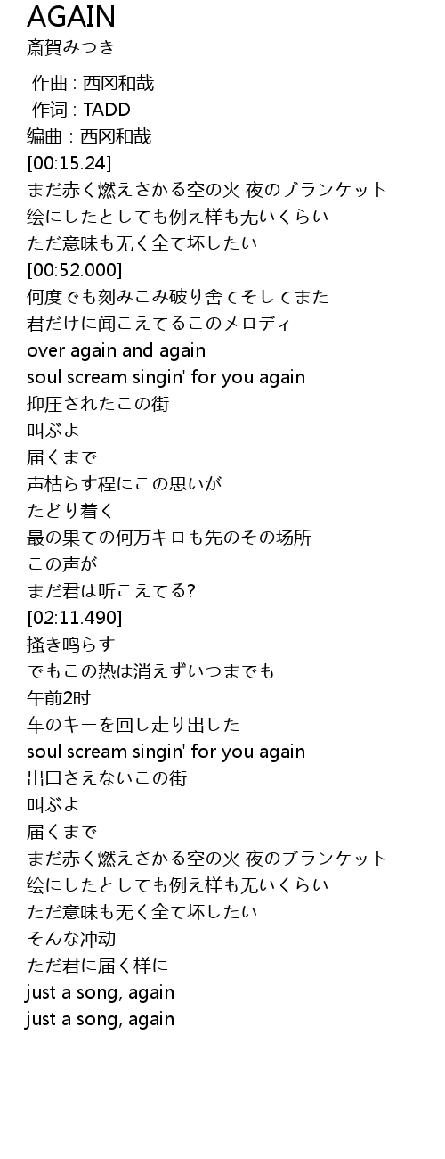 | [01:00.490] | 何度でも刻みこみ破り舍てそしてまた |