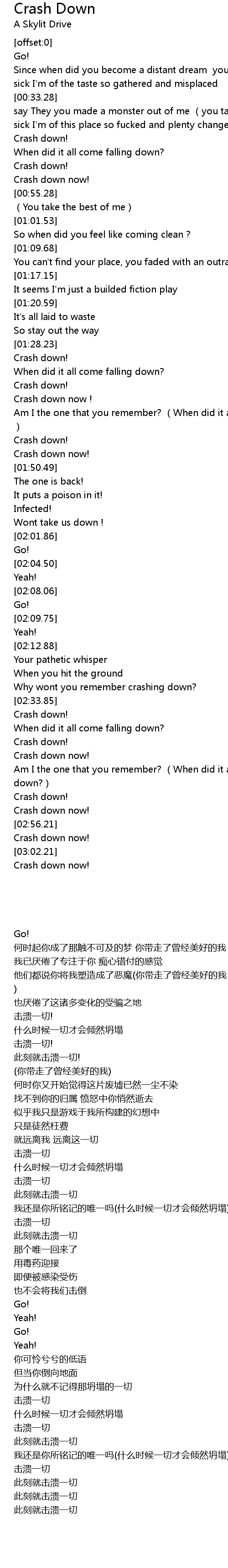 | [02:50.85] | Crash down! |