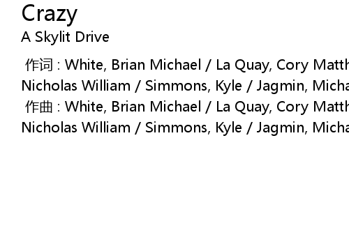 | [00:00.000] | 作曲 : White, Brian Michael / La Quay, Cory Matthew / Miller, Nicholas William / Simmons, Kyle / Jagmin, Michael |