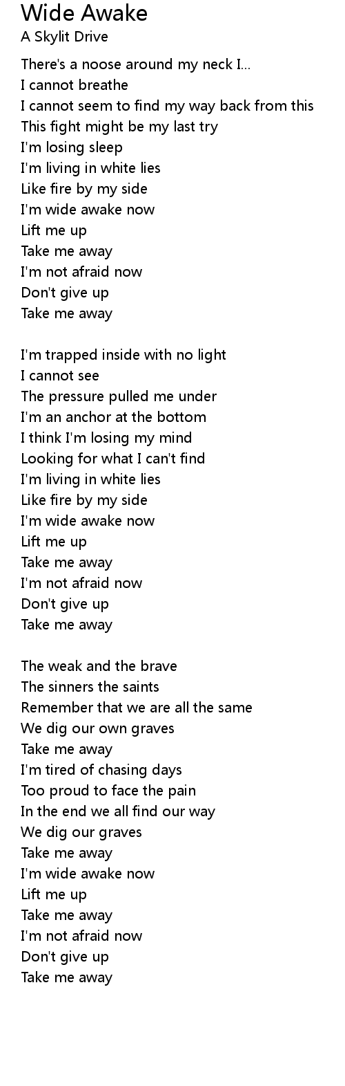 I'm wide awake now |