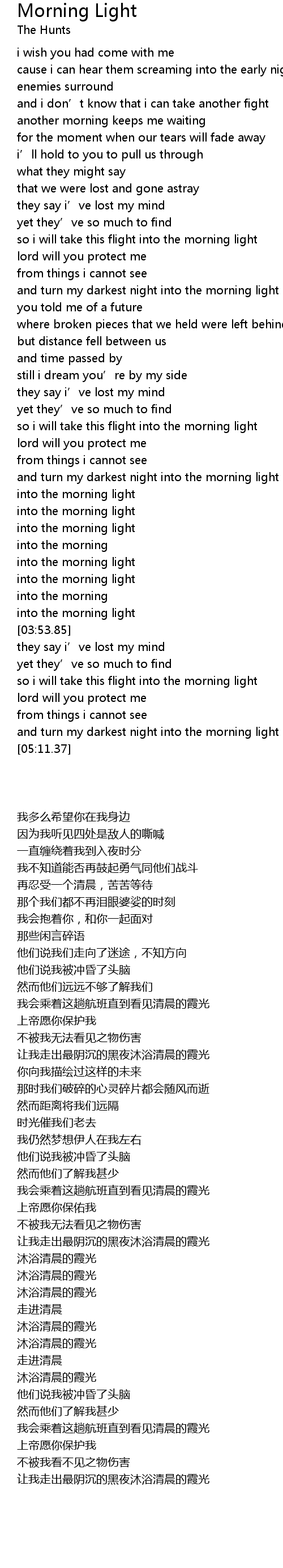 | [05:00.80] | and turn my darkest night into the morning light |