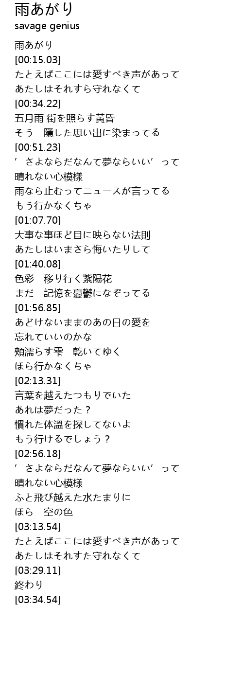 | [00:02.41] | 雨あがり |