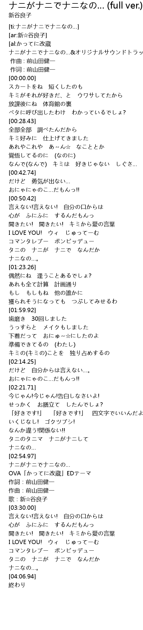 | [03:58.63] | タニの ナニが ナニで なんだか |