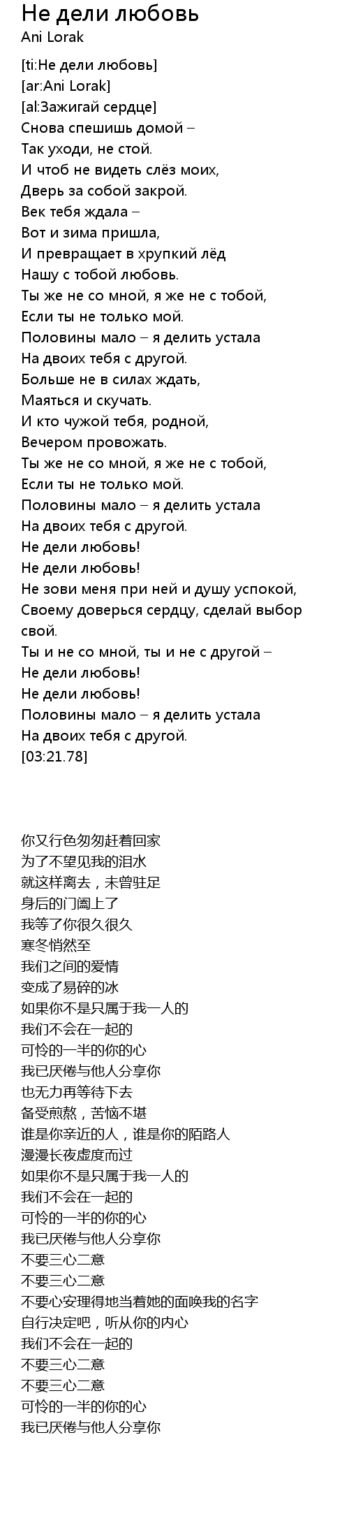 [02:51.95] Ты и не со мной, ты и не с другой –