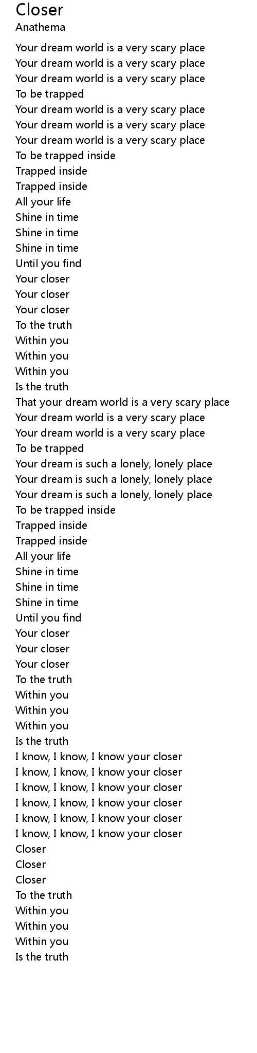 | I know, I know, I know your closer | |