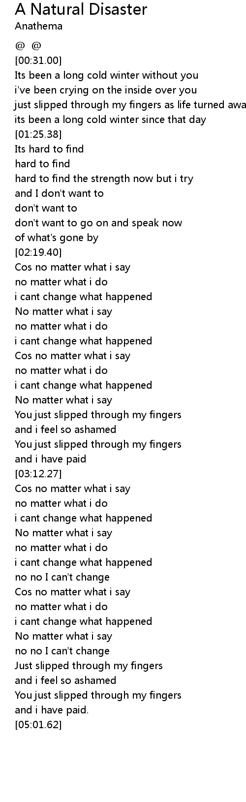 | [00:57.74] | just slipped through my fingers as life turned away |