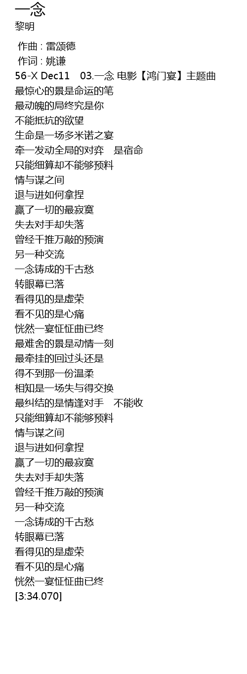 | [0:00.000] | 56-X Dec11 03.一念 电影【鸿门宴】主题曲 |