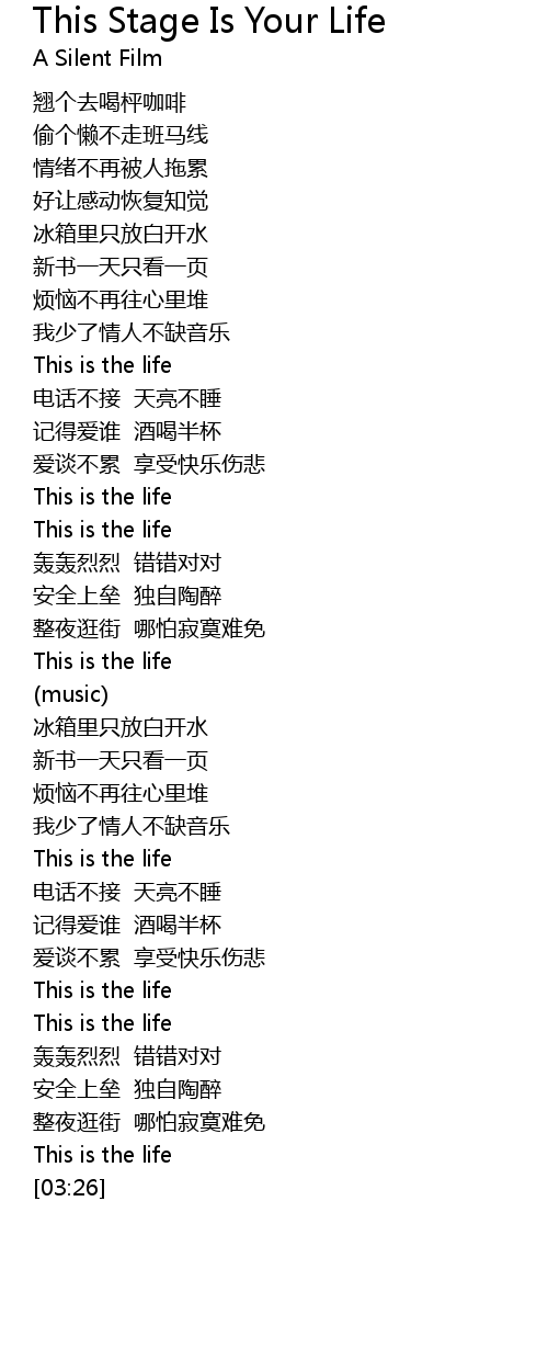 | Song | This Stage Is Your Life |