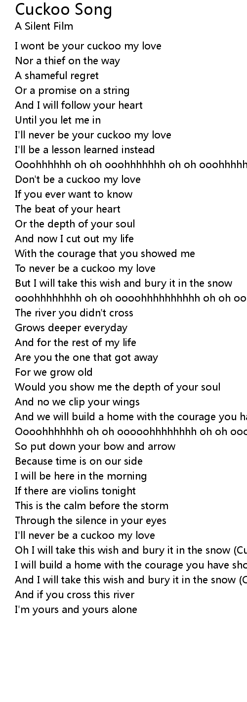 Oh I will take this wish and bury it in the snow (Cuckoo my love) |