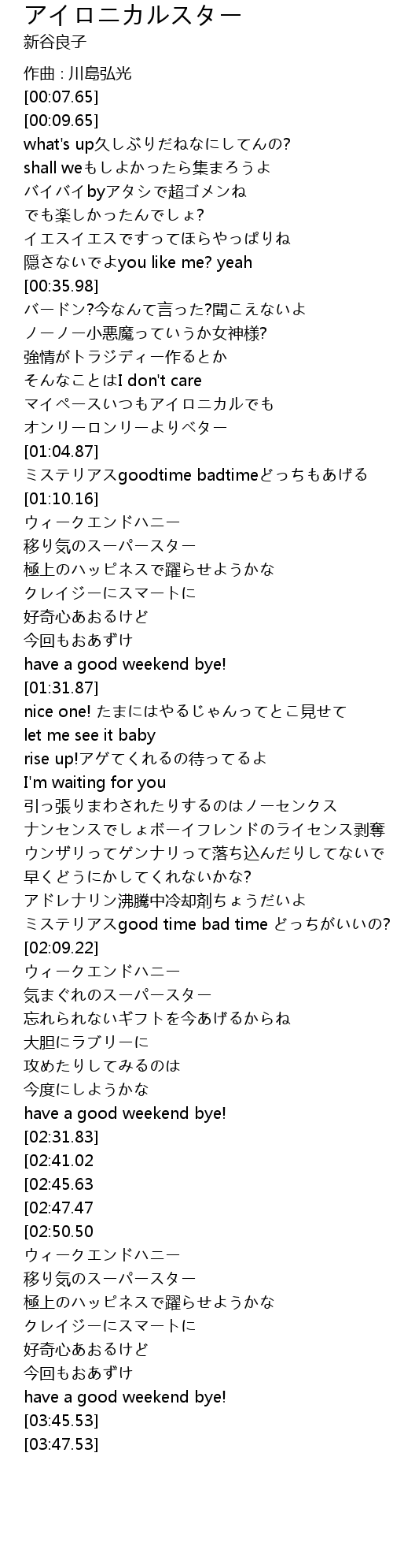 | [00:59.80] | マイペースいつもアイロニカルでも |