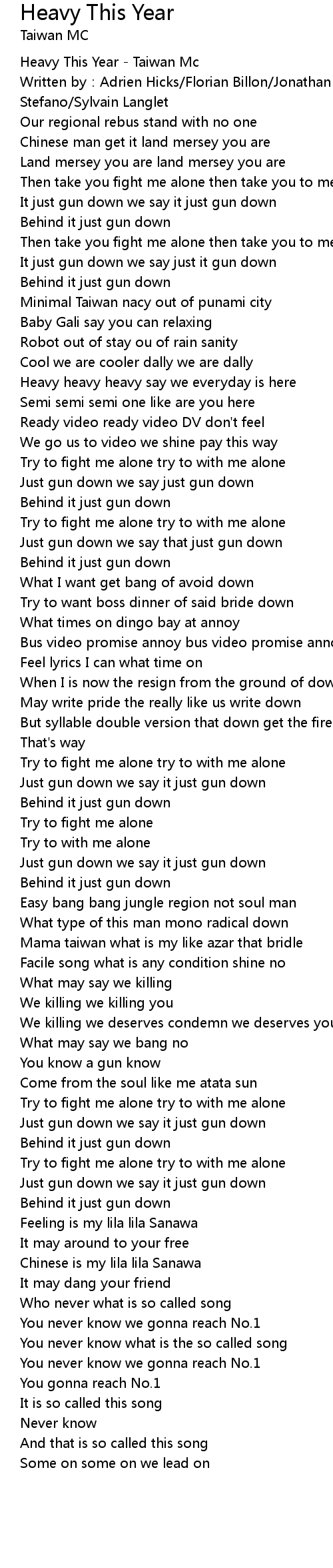 | [00:00.10] | Heavy This Year - Taiwan Mc |