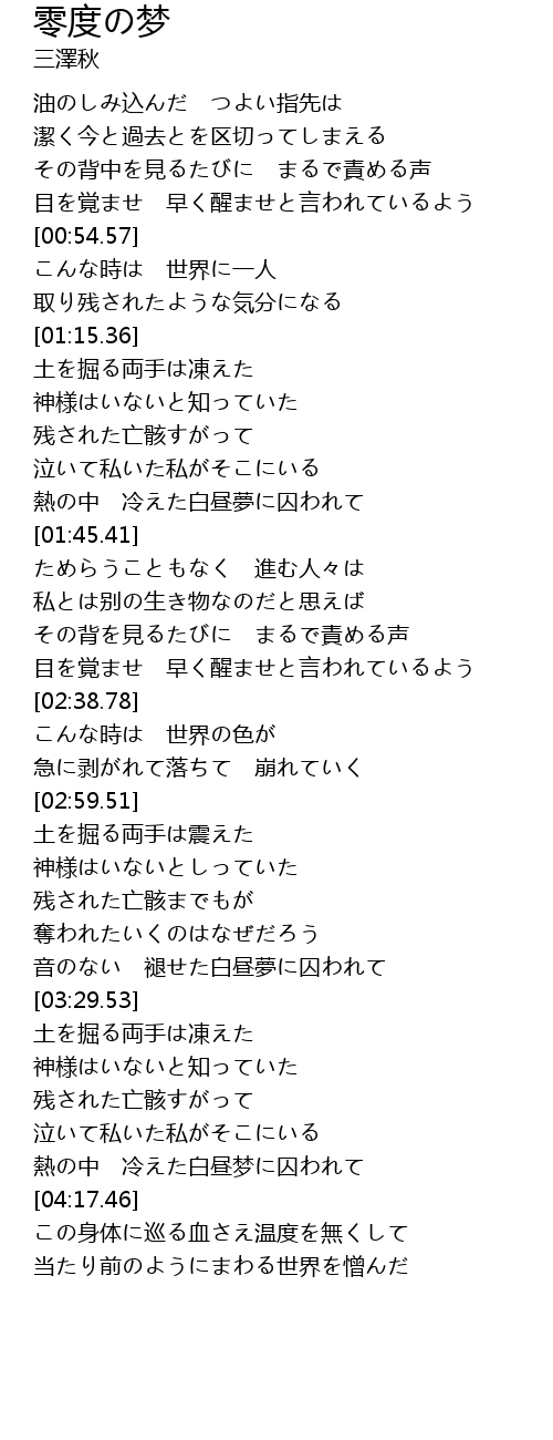 | [04:09.40] | 熱の中 冷えた白昼梦に囚われて |