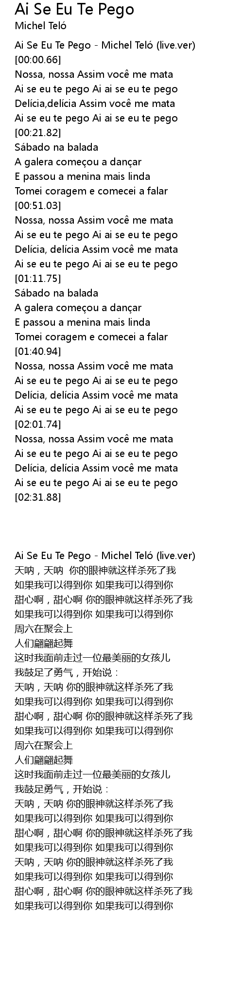 | [00:00.22] | Ai Se Eu Te Pego Michel Telo live. ver |
