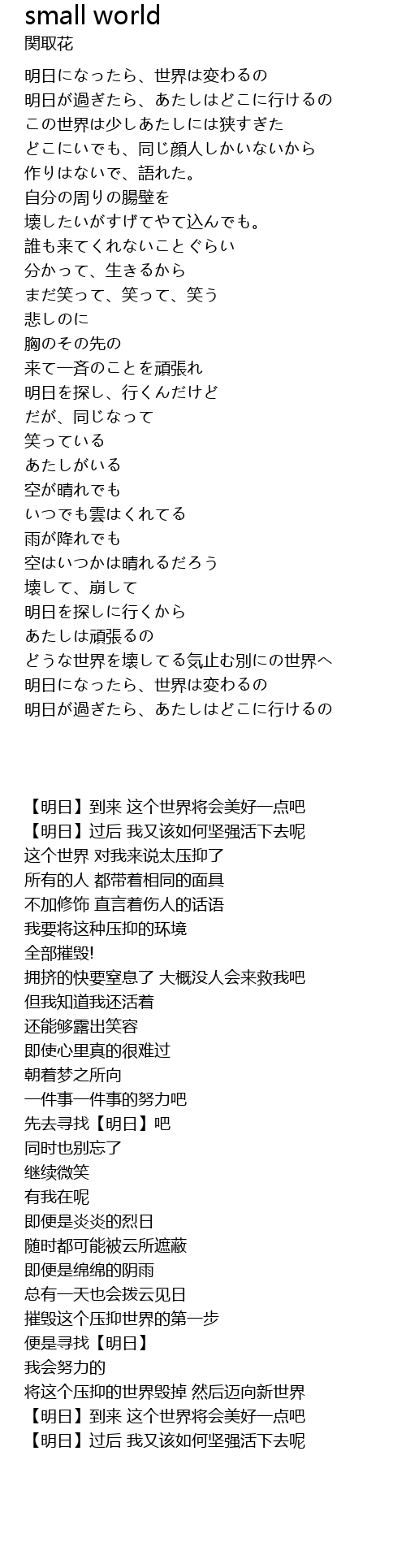 | [00:02.00] | 明日になったら、世界は変わるの |