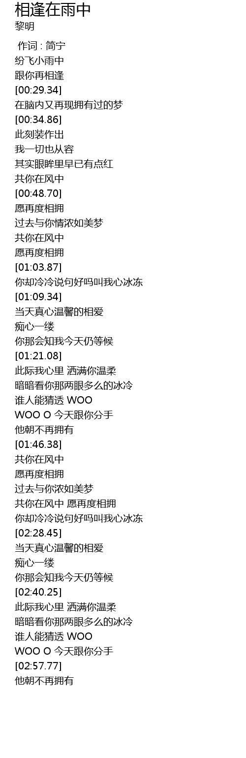 | [02:17.34] | 共你在风中 愿再度相拥 |