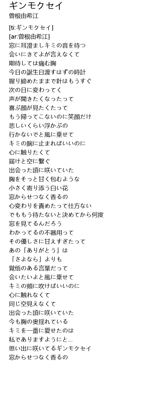 | [04:10.337] | 思い出に咲いてるギンモクセイ |